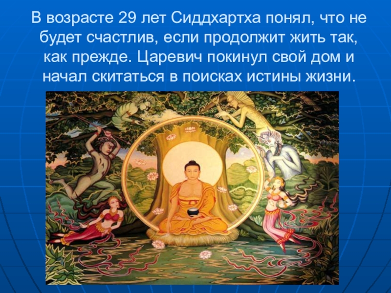 Слайд 7 В возрасте 29 лет Сиддхартха понял, что не будет счастлив, если