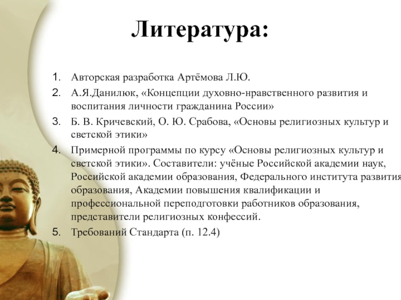 Примерной программы по курсу «Основы религиозных культур и светской этики». Составители: учёные Российской академии наук, Российской академии образования, Федерального института развития образования, Академии повышения квалификации и профессиональной переподготовки работников образования, представители религиозных конфессий.