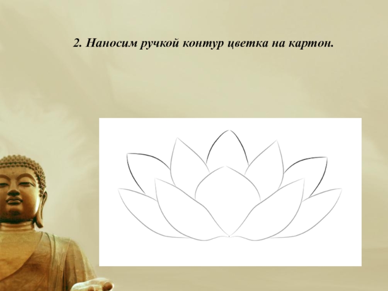 Слайд 162. Наносим ручкой контур цветка на картон.