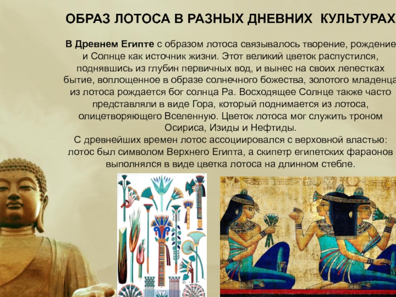 Слайд 6ОБРАЗ ЛОТОСА В РАЗНЫХ ДНЕВНИХ КУЛЬТУРАХ