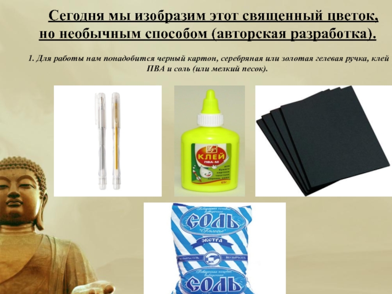 Слайд 15Сегодня мы изобразим этот священный цветок, но необычным способом (авторская разработка).