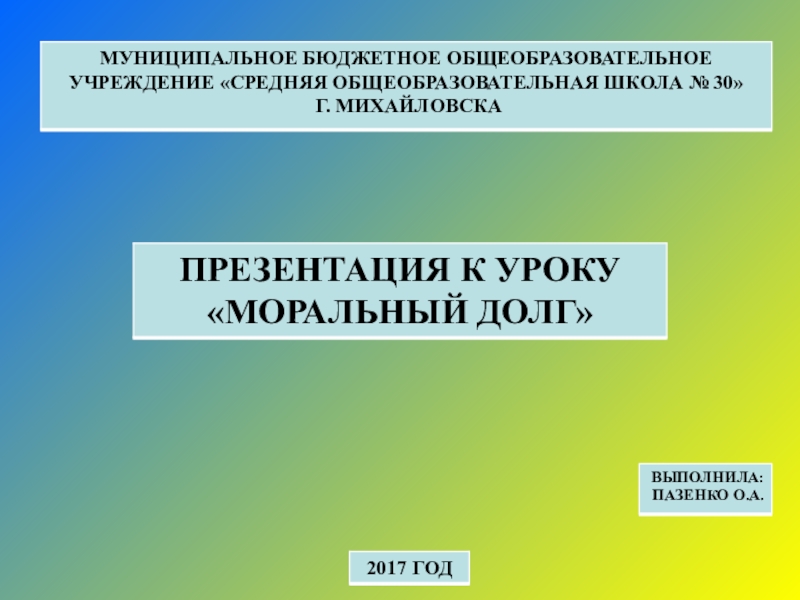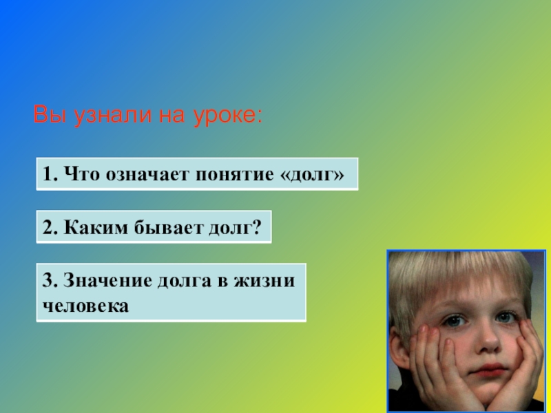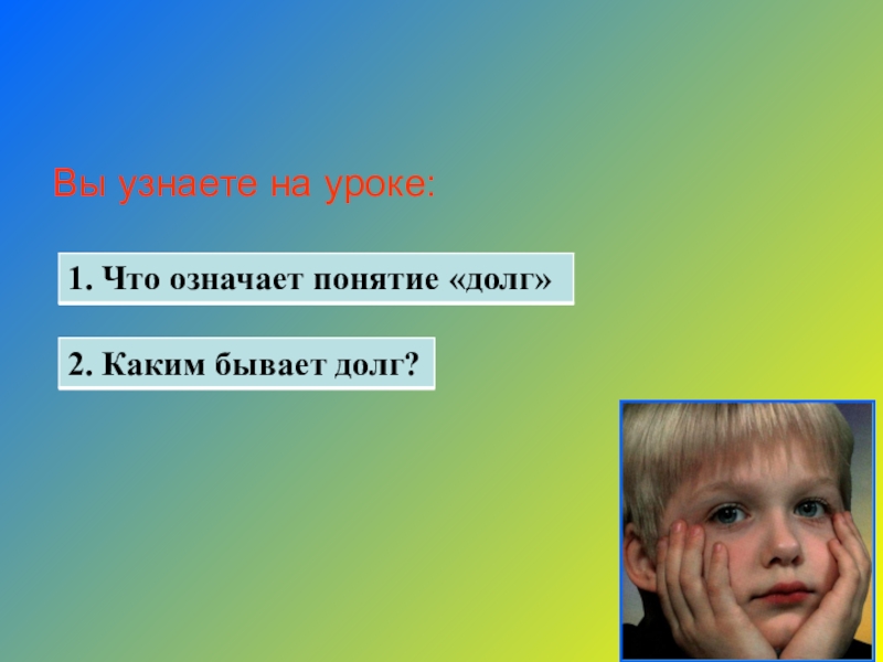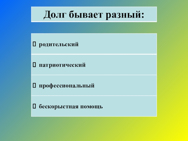 Презентация, доклад по ОРКСЭ на тему Моральный долг (4 класс)