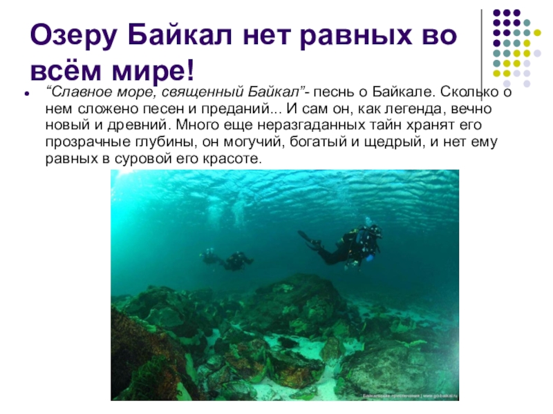 Слайд 43Озеру Байкал нет равных во всём мире!