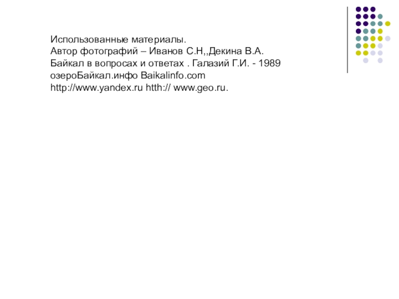и ответах . Галазий Г.И. - 1989 озероБайкал.инфо Baikalinfo.com http://www.yandex.ru htth:// www.geo.ru.