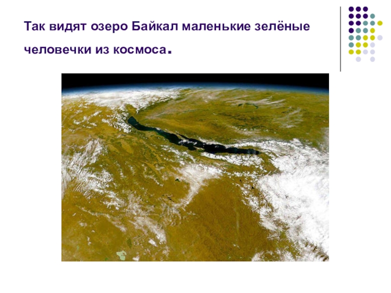Слайд 11Так видят озеро Байкал маленькие зелёные человечки из космоса.