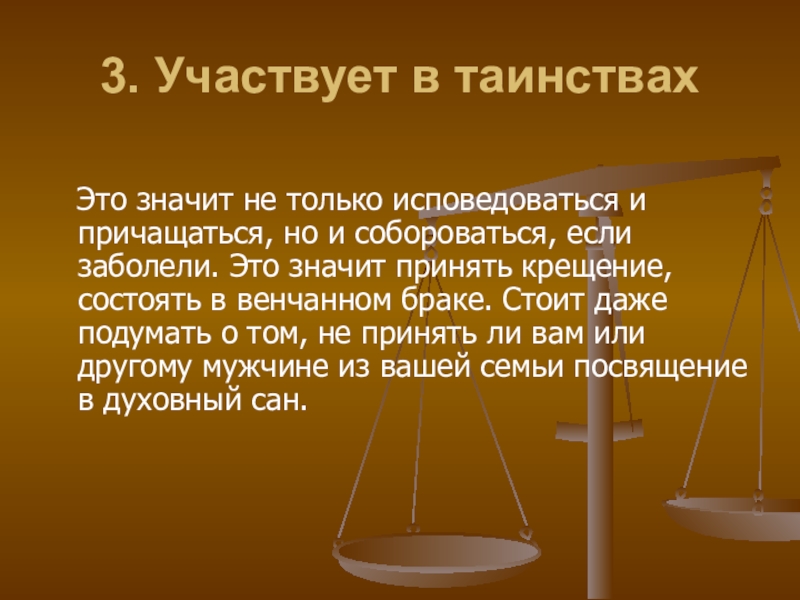 причащаться, но и собороваться, если заболели. Это значит принять крещение, состоять в венчанном браке. Стоит даже подумать о том, не принять ли вам или другому мужчине из вашей семьи посвящение в духовный сан.