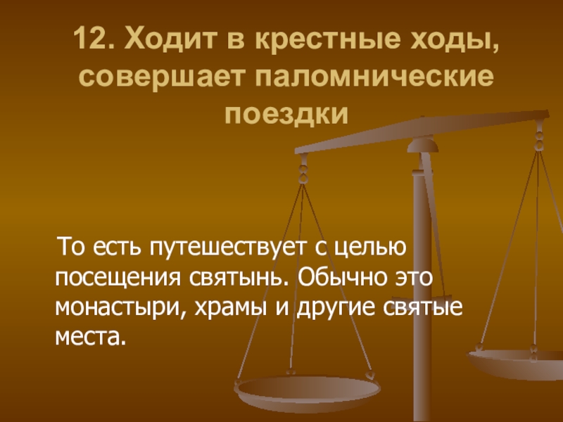Слайд 2612. Ходит в крестные ходы, совершает паломнические поездки