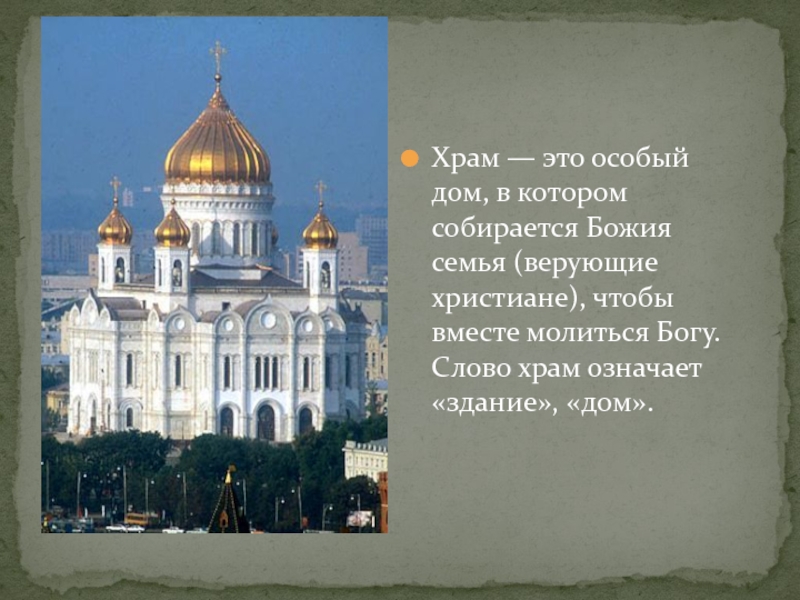 христиане), чтобы вместе молиться Богу. Слово храм означает «здание», «дом».