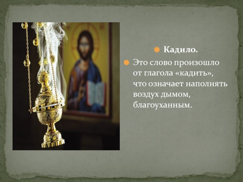 Это слово произошло от глагола «кадить», что означает наполнять воздух дымом,