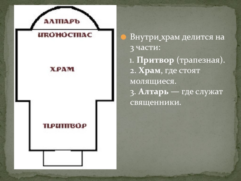 Алтарь — главнейшая часть храма, святое место. В него входят только