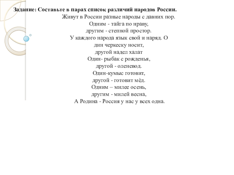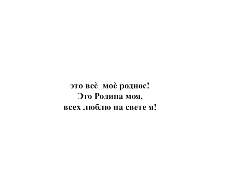 берѐзки, вдоль которых рядом с мамой мы идѐм. Что мы Родиной зовѐм? Поле с тонким колоском, Наши праздники и песни, тѐплый вечер за окном. Что мы Родиной зовѐм? Всѐ, что в сердце бережѐм, И под небом синим-синим флаг России над Кремлѐм.