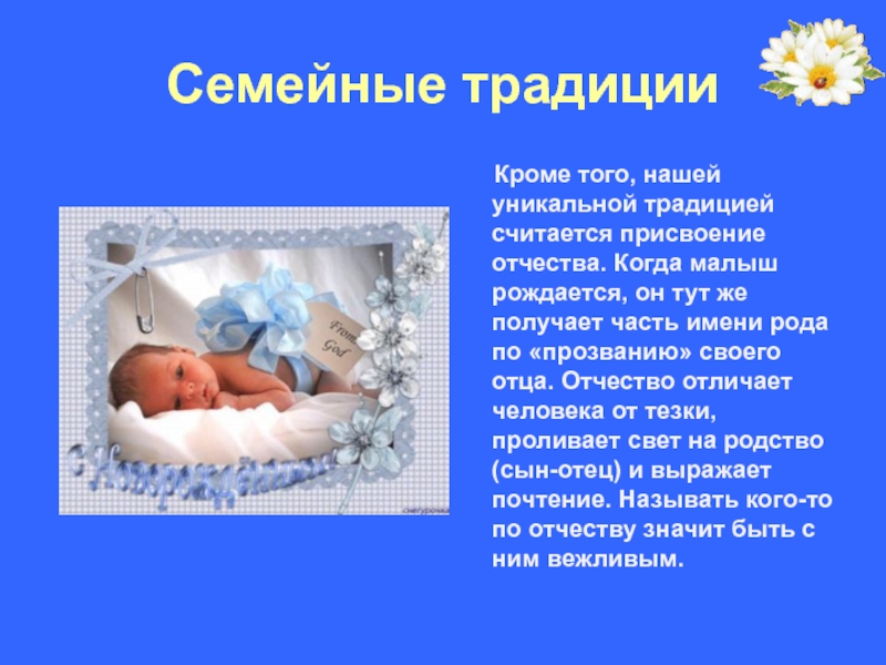 Существует также прекрасный обычай называть ребенка