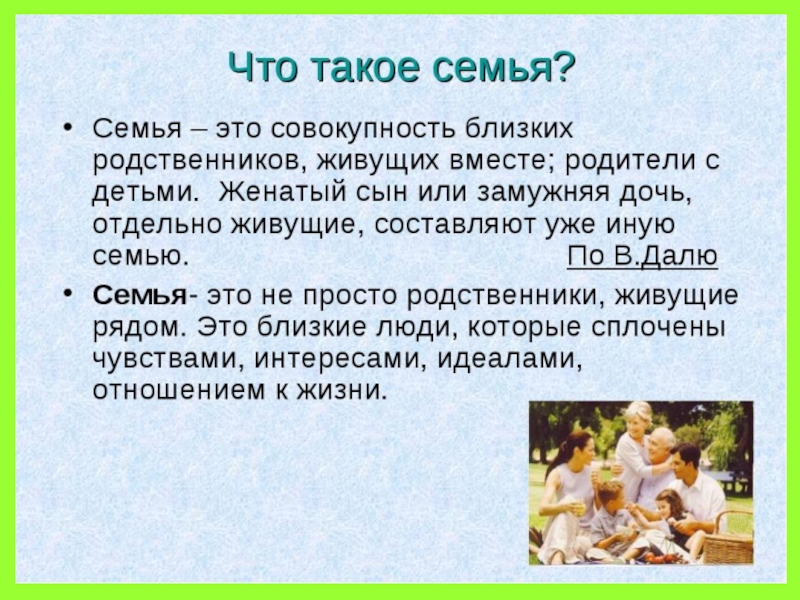 Тема: «Семья.Семейные традиции».