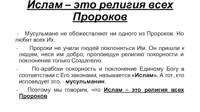 Поэтому мы говорим, что Ислам – это религия всех Пророков