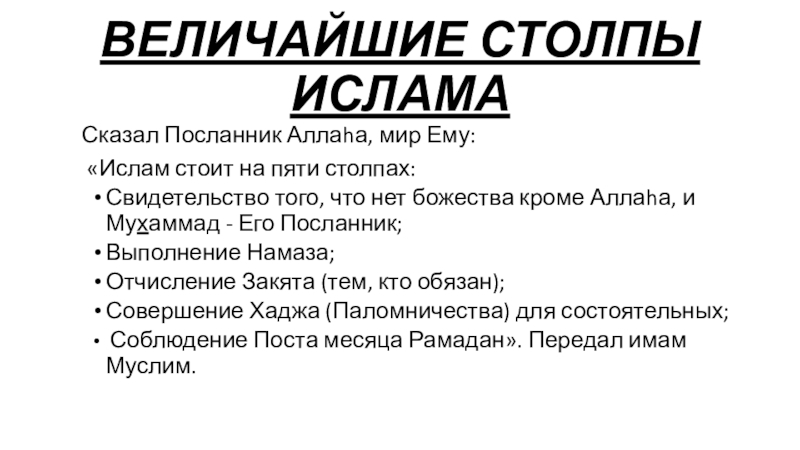 Слайд 12ВЕЛИЧАЙШИЕ СТОЛПЫ ИСЛАМА