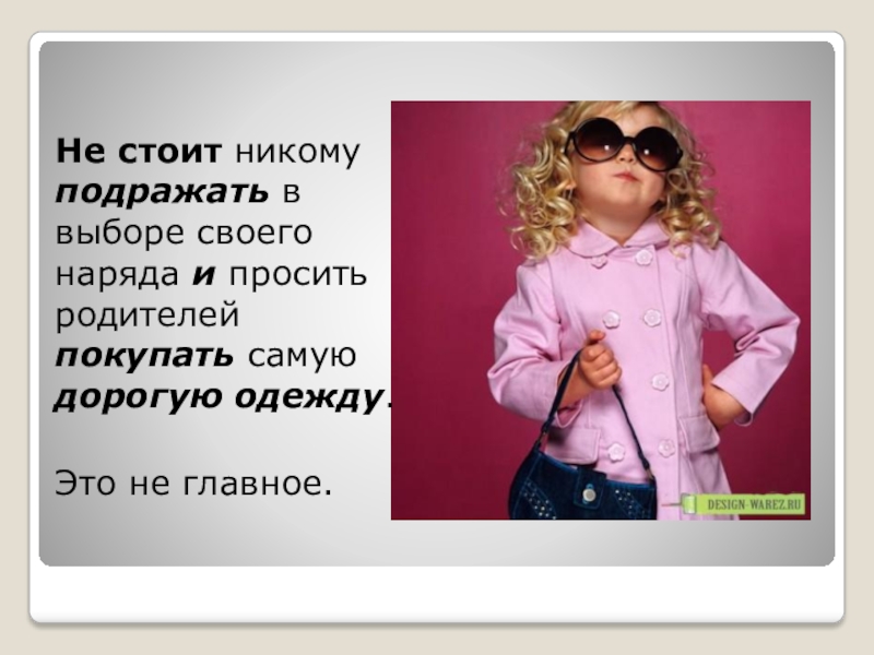 Слайд 16Не стоит никому подражать в выборе своего наряда и просить родителей
