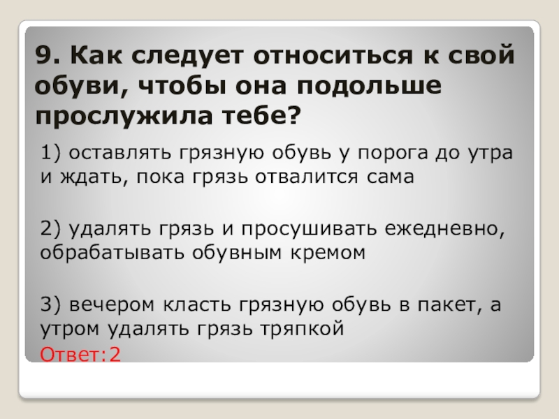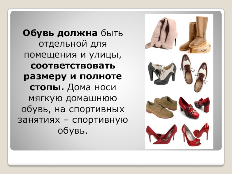 Слайд 279. Как следует относиться к свой обуви, чтобы она подольше прослужила