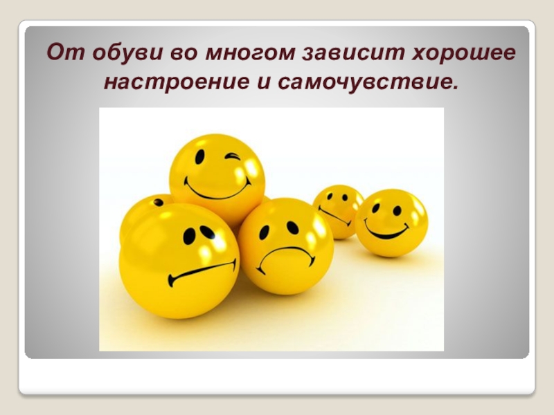 Слайд 13От обуви во многом зависит хорошее настроение и самочувствие.