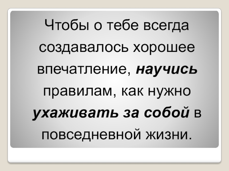 Слайд 4Чтобы о тебе всегда создавалось хорошее впечатление, научись правилам, как нужно