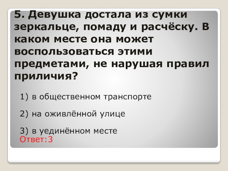 Слайд 235. Девушка достала из сумки зеркальце, помаду и расчёску. В каком