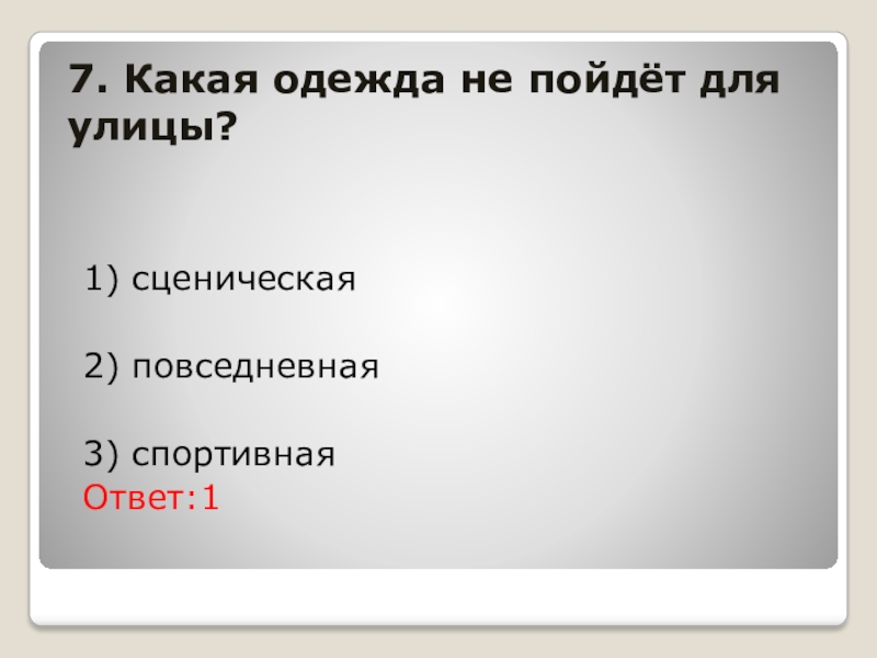 Слайд 257. Какая одежда не пойдёт для улицы?