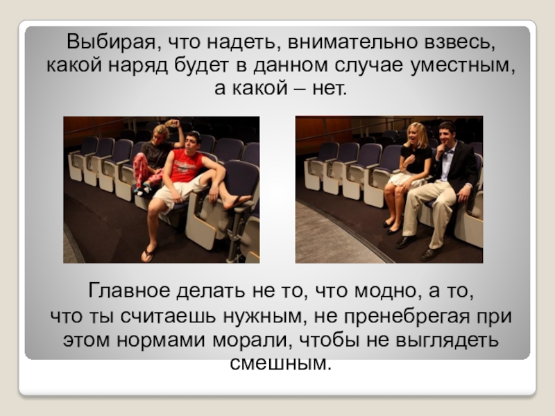 Слайд 17Выбирая, что надеть, внимательно взвесь, какой наряд будет в данном случае