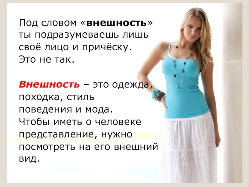 Слайд 3Под словом «внешность» ты подразумеваешь лишь