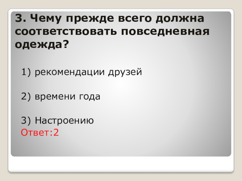 Слайд 213. Чему прежде всего должна соответствовать повседневная одежда?