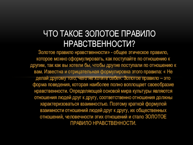 Эту истину Христос также выразил в словах, получивших позже название "Золотое правило нравственности":