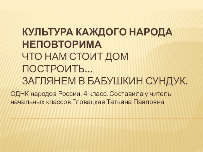 народов России. 4 класс. Составила у читель начальных классов Гловацкая Татьяна Павловна