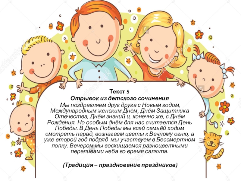 Новым годом, Международным женским Днём, Днём Защитника Отечества, Днём знаний и, конечно же, с Днём Рождения. Но особым днём для нас считается День Победы. В День Победы мы всей семьёй ходим смотреть парад, возлагаем цветы к Вечному огню, а уже второй год подряд мы участвуем в Бессмертном полку. Вечером мы восхищаемся разноцветными переливами неба во время салюта.