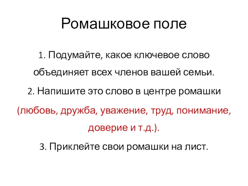1. Подумайте, какое ключевое слово объединяет всех членов вашей семьи.