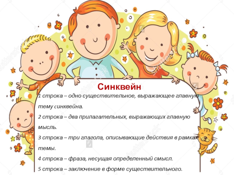 1 строка – одно существительное, выражающее главную тему cинквейна.