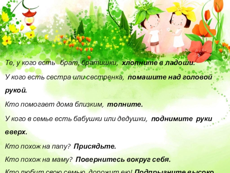 - Кто любит свою семью, дорожит ею! Подпрыгните высоко.