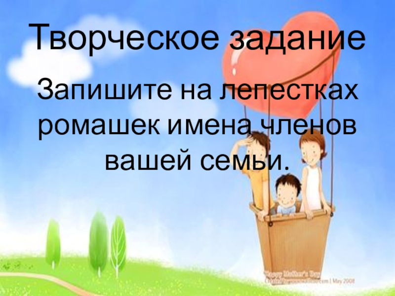 Запишите на лепестках ромашек имена членов вашей семьи.