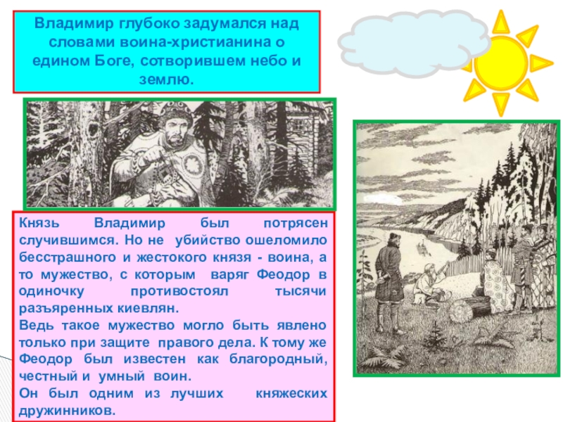 Владимир глубоко задумался над словами воина-христианина о едином Боге, сотворившем небо и землю.