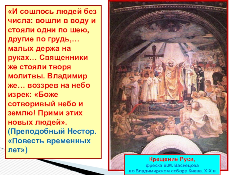 Так в X веке кроме Киева, Новгорода и Ростова христианская вера была проповедована в Полоцке, Луцке, Смоленске, Пскове и других городах Древней Руси.