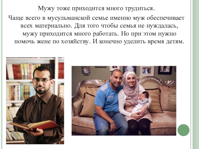 Слайд 6Мужу тоже приходится много трудиться.