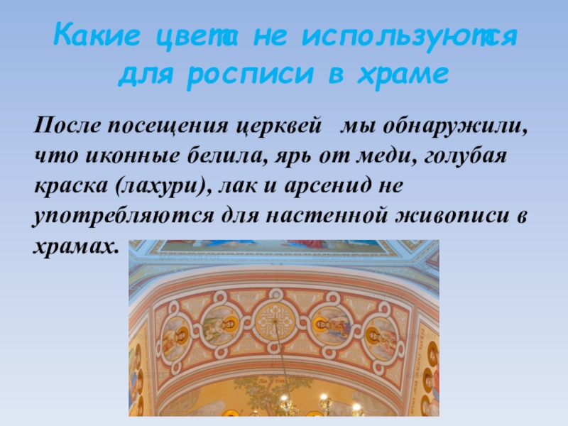 Слайд 19Какие цвета не используются для росписи в храме