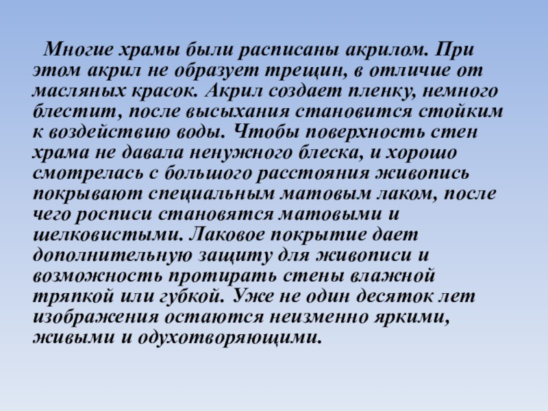 Слайд 9 Многие храмы были расписаны акрилом. При этом акрил не образует