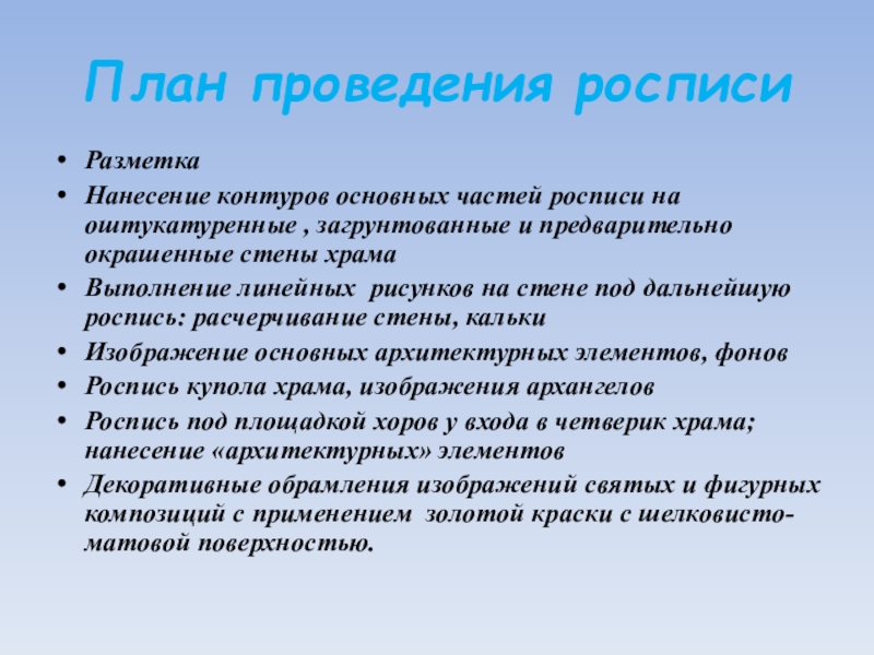 Слайд 6План проведения росписи