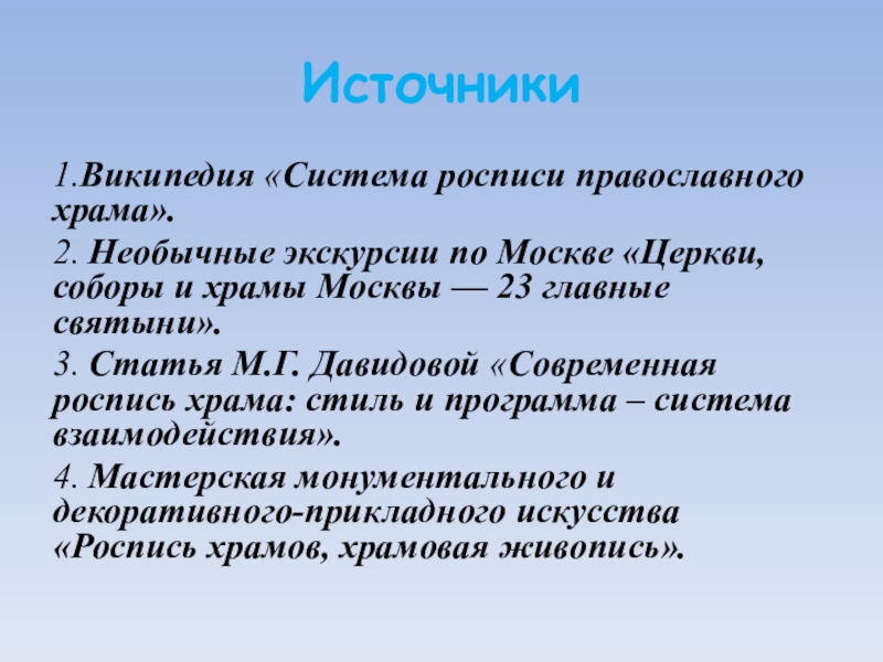 1.Википедия «Система росписи православного храма».