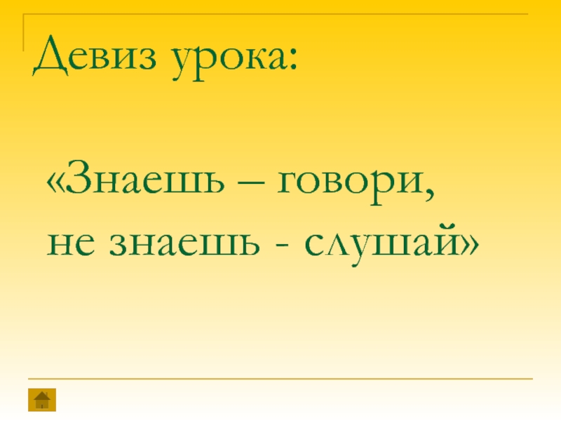 Девиз урока: «Знаешь – говори, не знаешь - слушай»