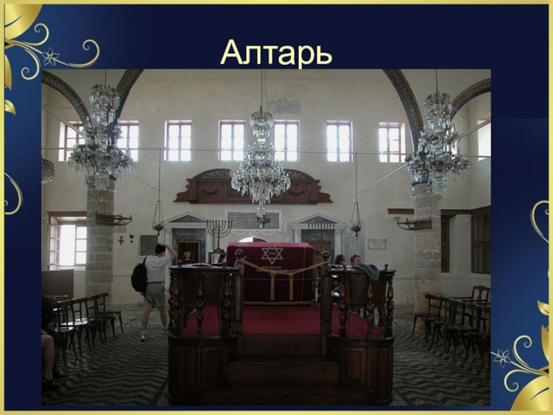 Слайд 10Шкаф, в котором хранится Тора, возвышение для чтения Торы