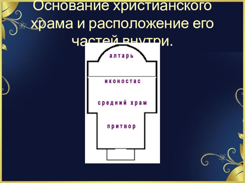 Слайд 21Основание христианского храма и расположение его частей внутри.