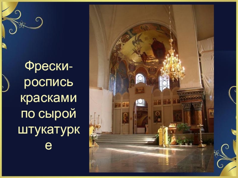 Слайд 18Фрески- роспись красками по сырой штукатурке