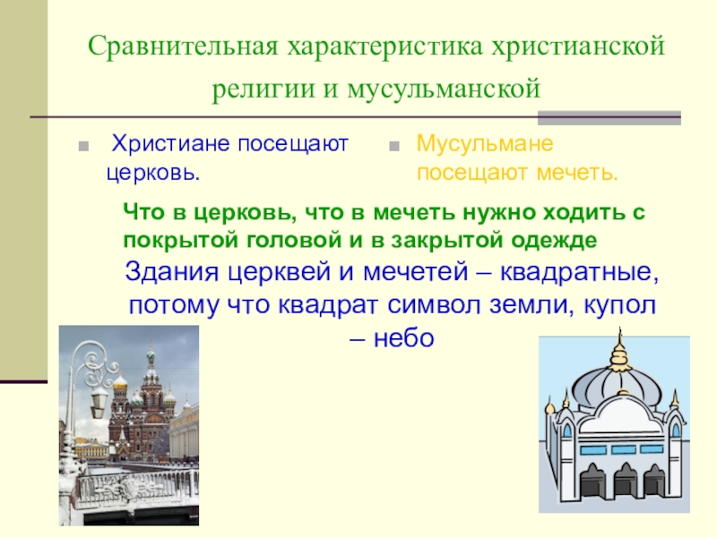 Здания церквей и мечетей – квадратные, потому что квадрат символ земли, купол – небо