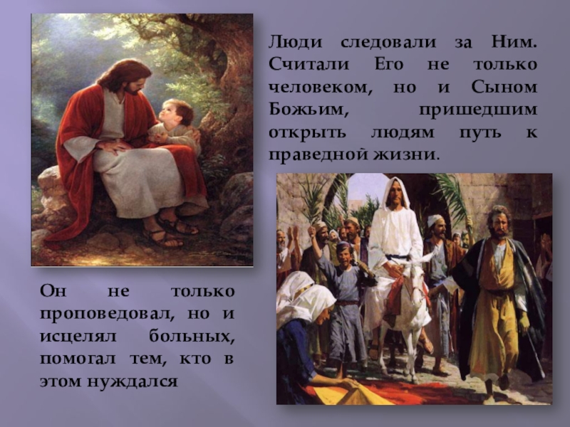 Люди следовали за Ним. Считали Его не только человеком, но и Сыном Божьим, пришедшим открыть людям путь к праведной жизни.