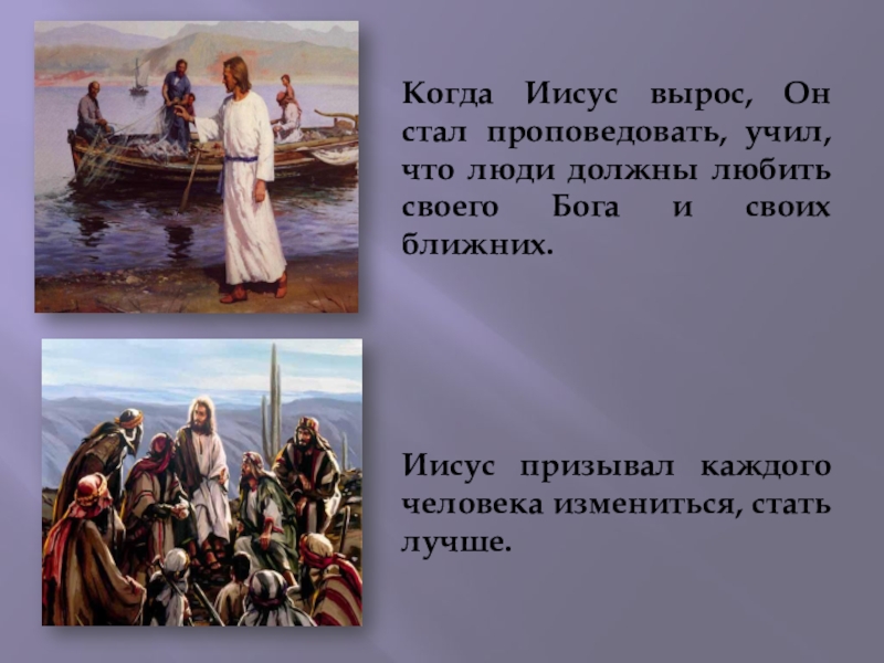 Слайд 7Когда Иисус вырос, Он стал проповедовать, учил, что люди должны любить
