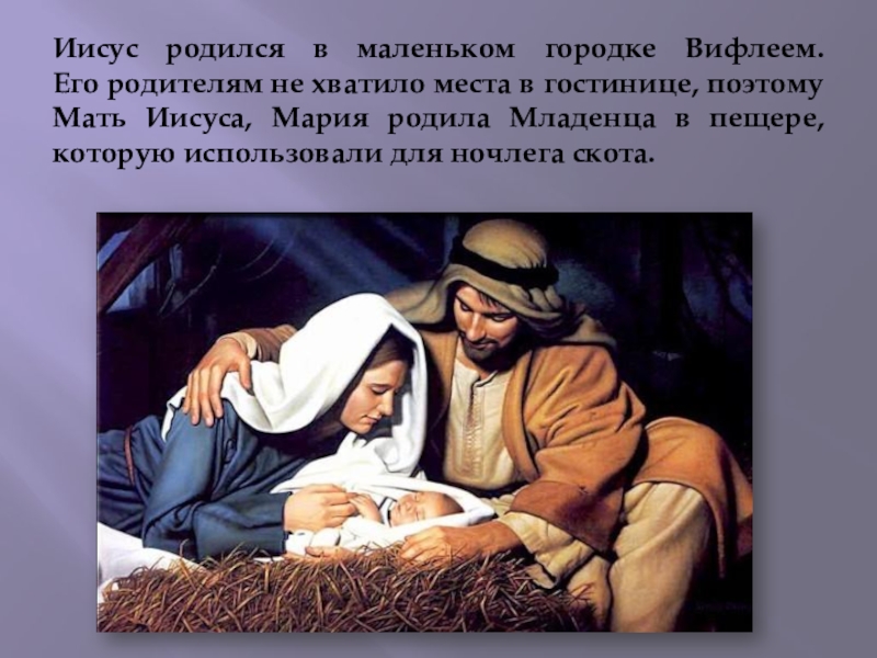 в гостинице, поэтому Мать Иисуса, Мария родила Младенца в пещере, которую использовали для ночлега скота.